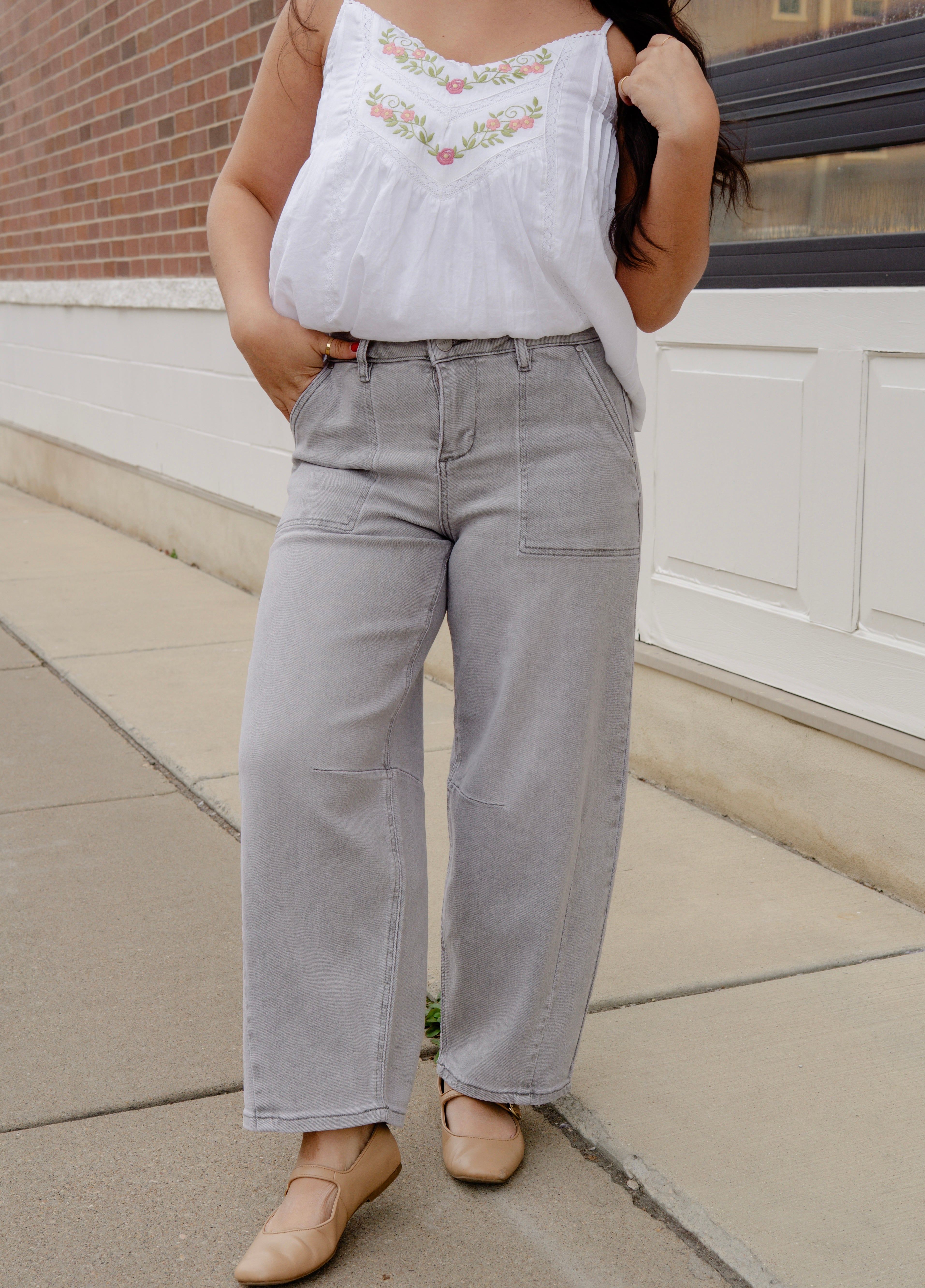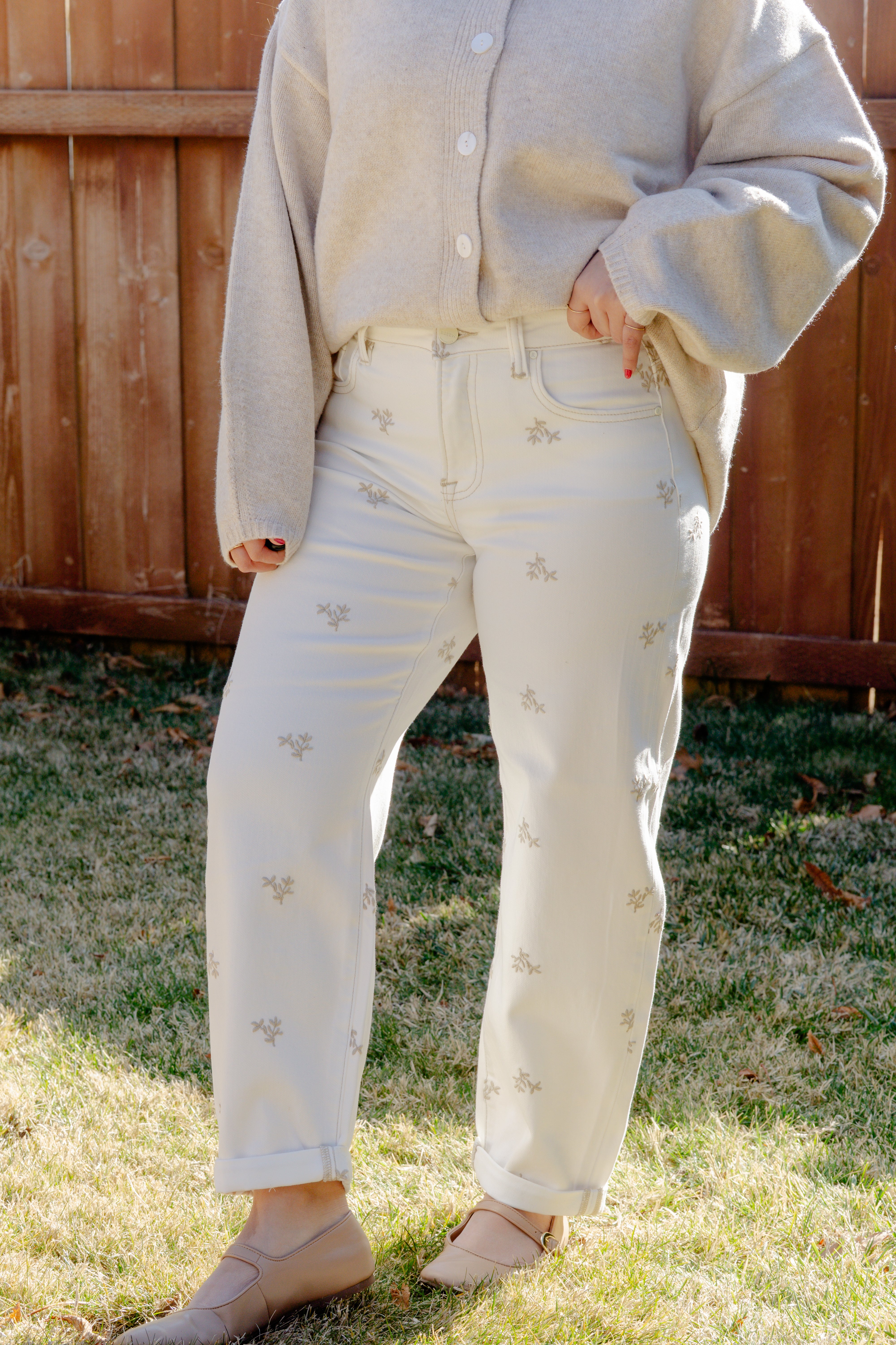 Leaf Embroidered Barrel Pants